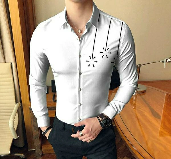 Printed Slim Fit Casual Shirt Fabric: Cotton Color: White Pattern: Printed Fit: Slim Fit Sleeves Type: Full Sleeves Collar Type: Spread Collar